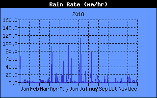 Jahresverläufe 2018 von Lufttemperatur, Globalstrahlung, Strahlungsenergie, Relativer Luftfeuchte, Niederschlagsrate, Niederschlag, Evapotranspiration (Verdunstung), Taupunkt, Mittlerer Windgeschwindigkeit, Windböen und Luftdruck.