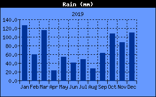 Jahresverläufe 2019 von Lufttemperatur, Globalstrahlung, Strahlungsenergie, Relativer Luftfeuchte, Niederschlagsrate, Niederschlag, Evapotranspiration (Verdunstung), Taupunkt, Mittlerer Windgeschwindigkeit, Windböen und Luftdruck.