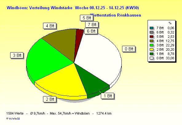 Verteilung der Windrichtung in der lfd. Woche (in %) Verteilung der Windboen in der lfd. Woche (in Beaufort bzw %)
